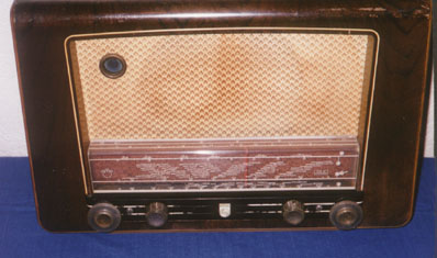 Bakelite, covered with imitation wood finishing | Remember that I was looking for the original knobs for this radio? Well Clement Goossens had some and delivered them to me. Thanxx Clement! |